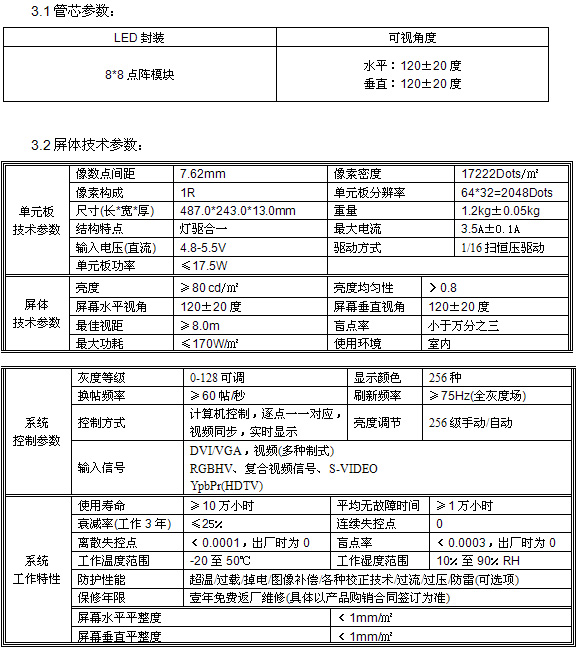参数说明: 像素间距:5.0mm